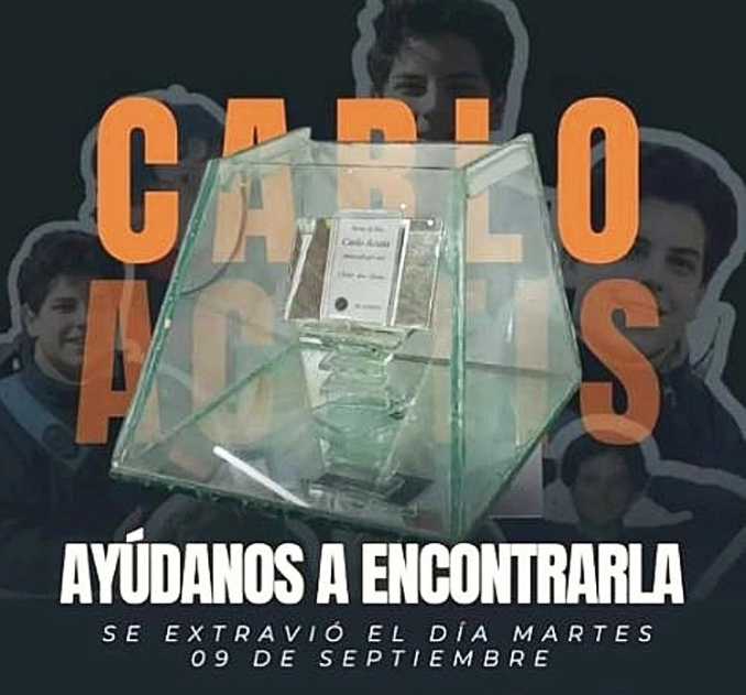 Adrian Garcia, người điều phối Nhóm Giới trẻ San Carlo Acutis, ngày 12/9 cho biết thánh tích bị đánh cắp là mảnh vải nhỏ hình tròn, đặt trong hộp kính tại giáo xứ Santo Domingo de Guzman ở thành phố Cardenal Quintero, bang Merida, miền tây Venezuela.