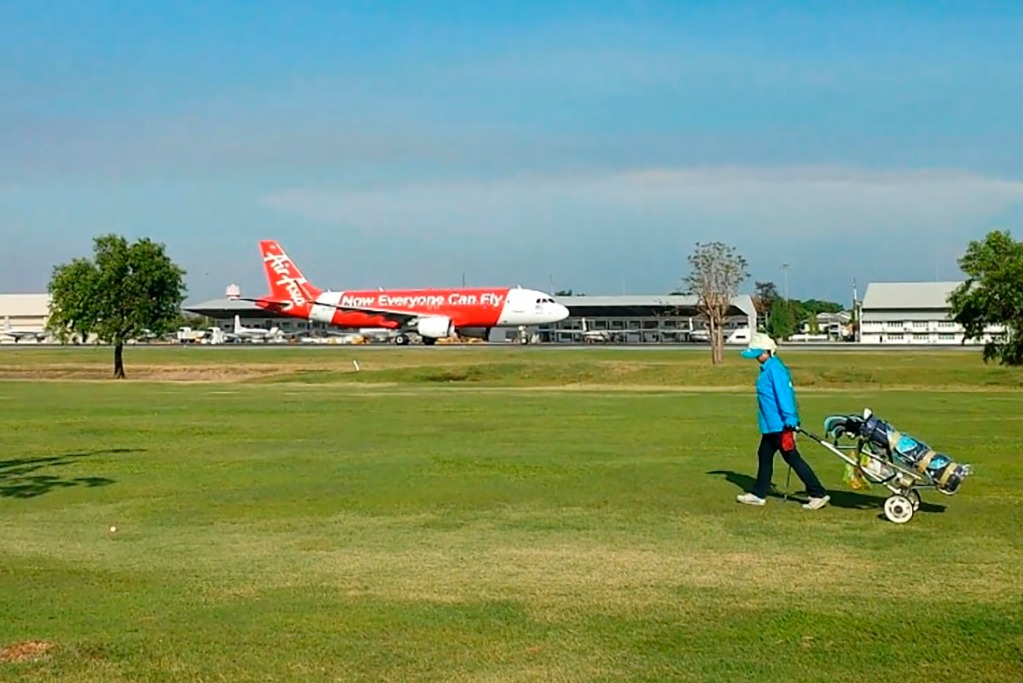 Ít nơi nào trên thế giới sở hữu một sân golf 18 lỗ nằm giữa hai đường băng như Don Mueang, Thái Lan. Khách chơi golf khi đến đây phải qua soi chiếu an ninh như hành khách và được cảnh báo bằng đèn đỏ khi có máy bay hạ cánh.