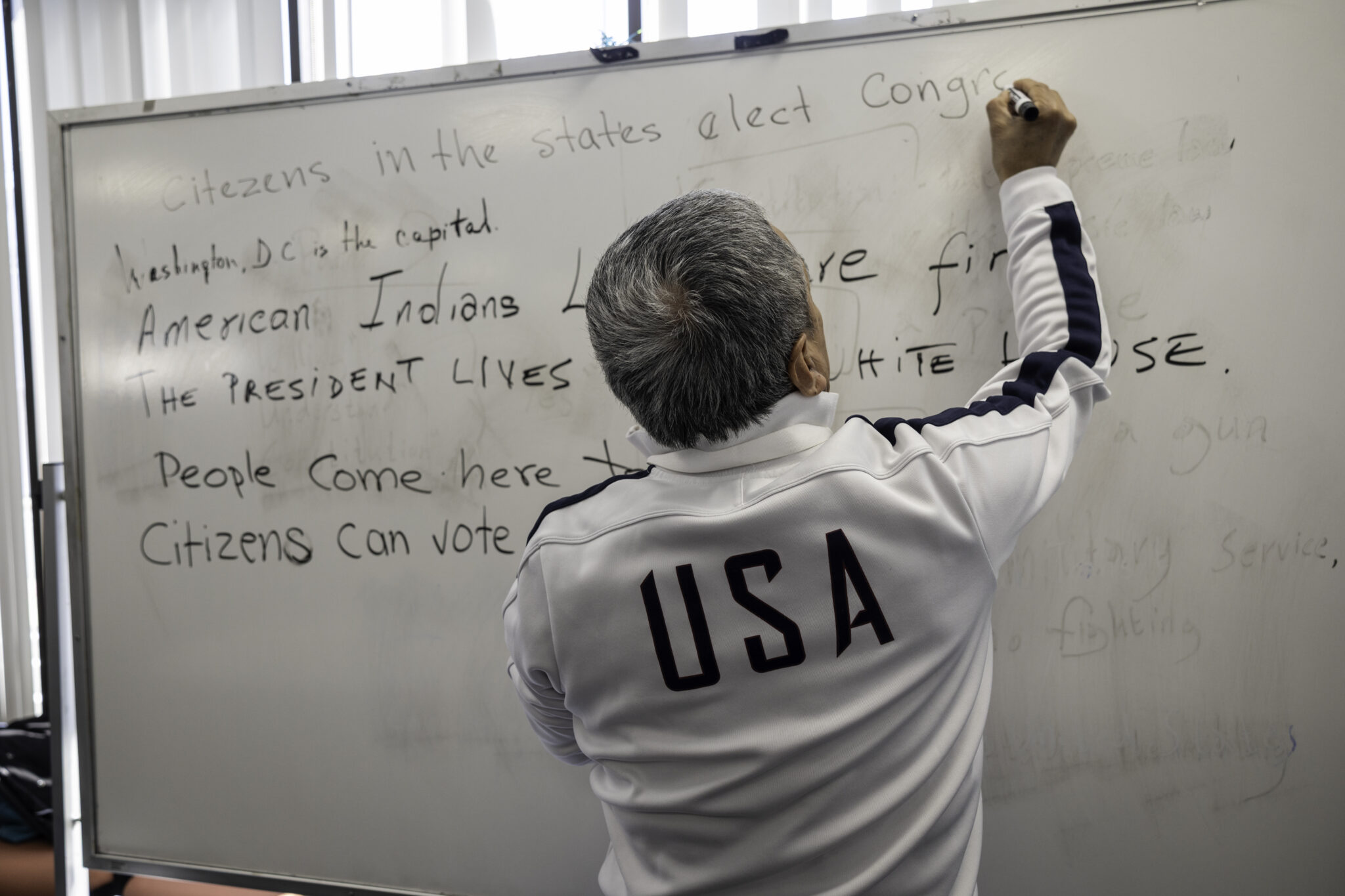 Một lớp luyện thi nhập tịch Hoa Kỳ ngày 29/3/2025 ở Connecticut. (Ảnh: John Moore/Getty Images)