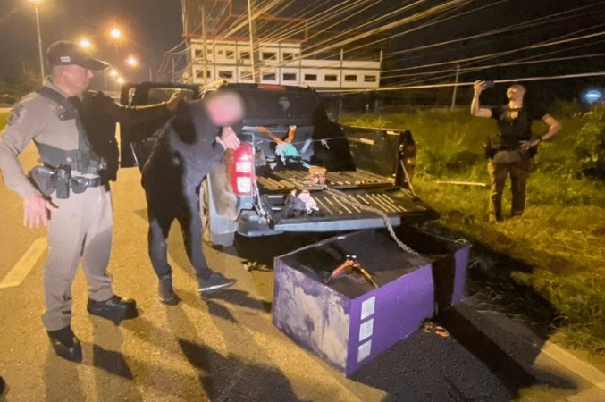 Cảnh sát hôm 22/9 nhận được thông báo có người đang cố di dời máy ATM khỏi chi nhánh Ngân hàng Thương mại Siam ở Tambon Ban Thum, huyện Mueang, tỉnh Khon Kaen, đông bắc Thái Lan. Khi đến nơi, họ phát hiện một người đàn ông lái chiếc xe bán tải không biển số đang đi ngược chiều, kéo lê phần thân chính của máy ATM phía sau.