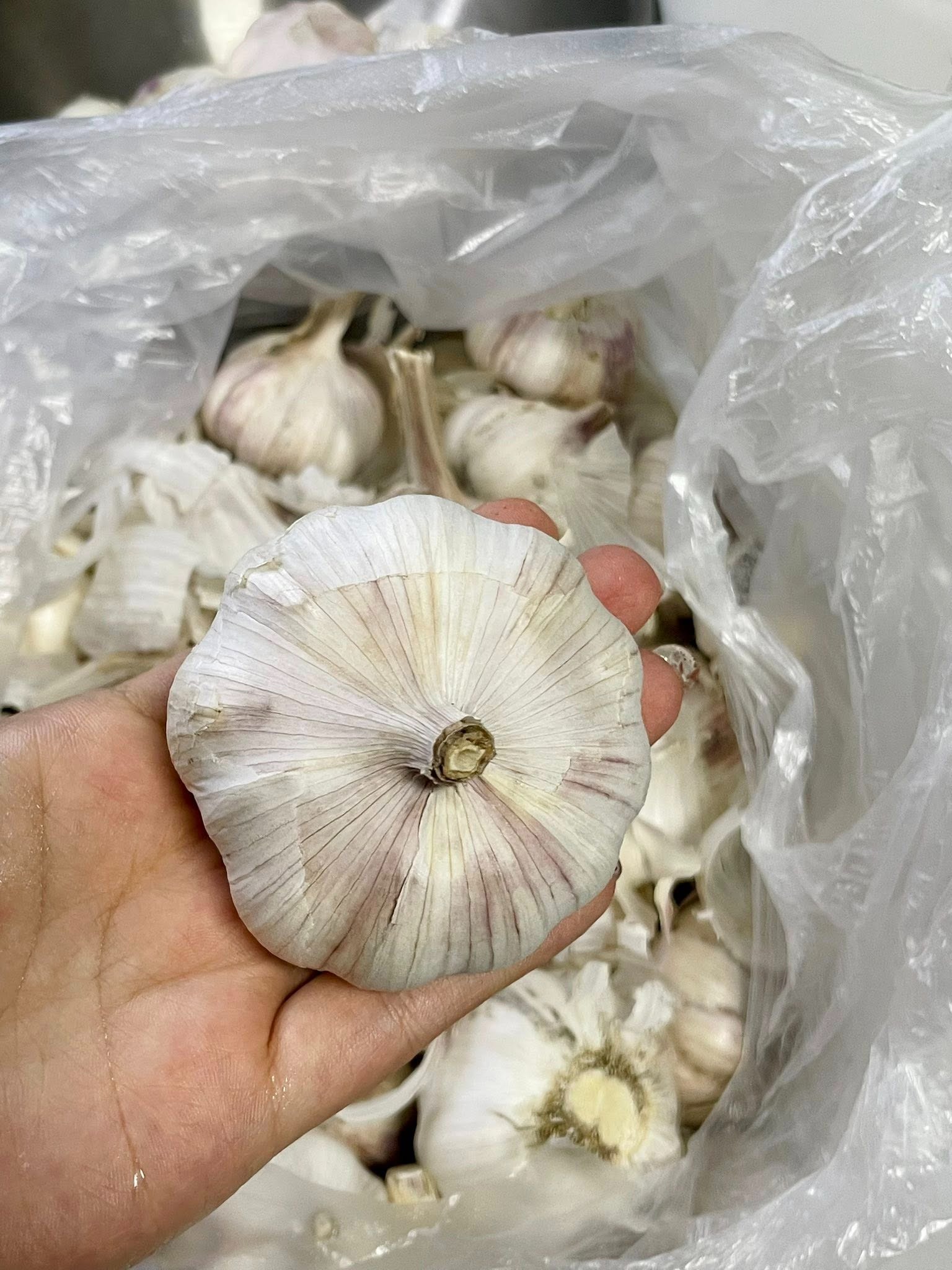 Dùng tỏi tươi mới thu hoạch cuống còn xanh thế này càng ngon