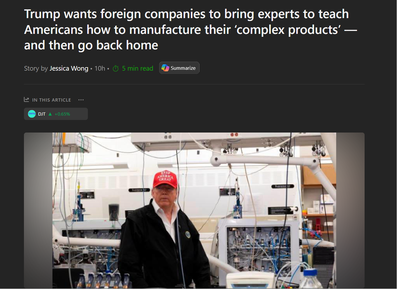 Trump muốn các công ty nước ngoài đưa chuyên gia đến để dạy người Mỹ cách sản xuất "các sản phẩm phức tạp" của họ — rồi sau đó trở về nước. Liệu điều này có hiệu quả không?