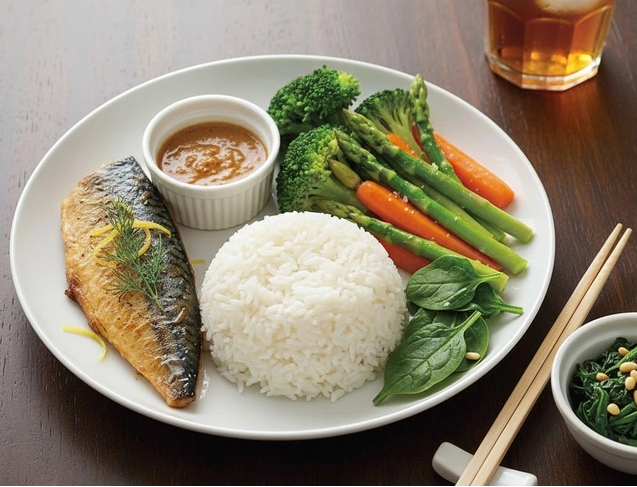 Cơm ăn cùng cá và rau luộc là lựa chọn truyền thống đầy đủ dưỡng chất