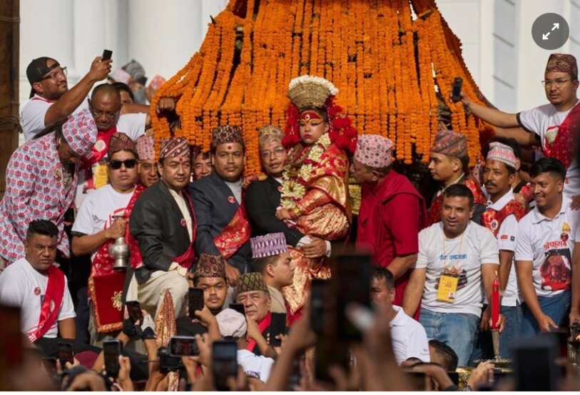 Nữ thần Trishna Shakya trong một lần xuất hiện tại lễ hội. Ảnh: Independent.
