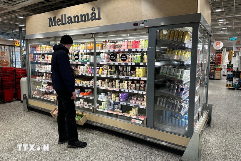 Người tiêu dùng mua sắm tại siêu thị ở Stockholm, Thụy Điển. (Ảnh: THX/TTXVN)