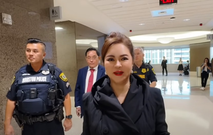 Bà Nguyễn Phương Hằng trước khi bước vào tòa án ở Houston. (Ảnh chụp từ màn hình YouTube Hoa Mộc Lan TV)