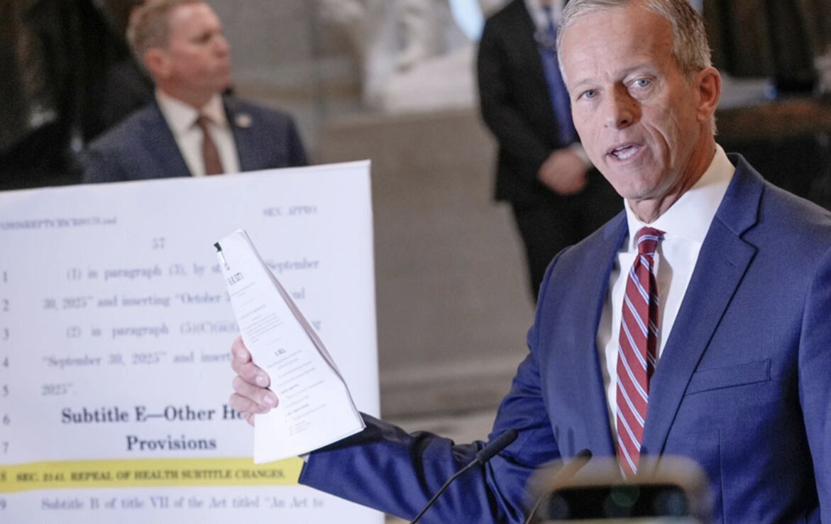 Ông John Thune, lãnh đạo phe đa số của Đảng Cộng hòa tại Thượng viện, tại cuộc họp báo ở trụ sở Quốc hội Mỹ ở thủ đô Washington hôm 3-10.