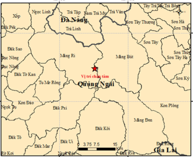 Ngày 6/10, Trung tâm Báo tin động đất và Cảnh báo sóng thần - Viện Các khoa học Trái đất, Viện Hàn lâm Khoa học và Công nghệ Việt Nam vừa phát đi liên tiếp 9 thông báo động đất xảy ra ở xã Măng Bút và Măng Ri (tỉnh Quảng Ngãi), trong đó có một trận động đất có độ lớn 4,9 độ richter. Cấp độ rủi ro thiên tai cấp 1.