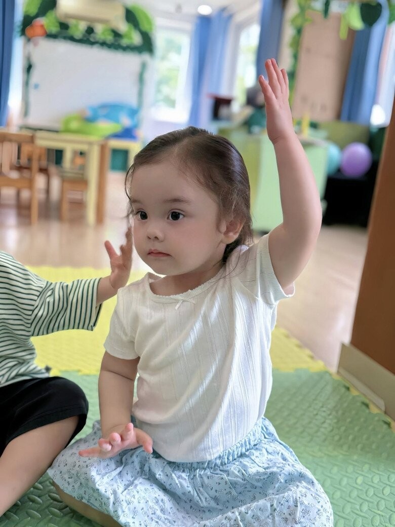 Bé Mật Ong đi học từ rất sớm và nhanh chóng hòa hợp với không gian lớp học.