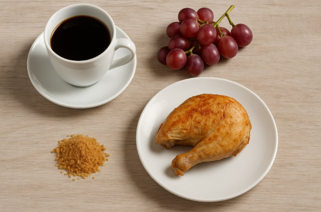 Trong các bữa chính, cụ thường ăn thịt gà thả vườn – loại gà nuôi tự nhiên, thịt săn chắc và ít chất béo. Với cụ, đó là nguồn đạm lành mạnh, dễ tiêu hóa và giúp duy trì sức mạnh cho cơ thể dù đã bước qua trăm tuổi. Đặc biệt, cả ba món cà phê, nho tươi và gà thả vườn đều là thực phẩm quen thuộc ở Việt Nam, được nhiều người yêu thích và sử dụng hằng ngày.