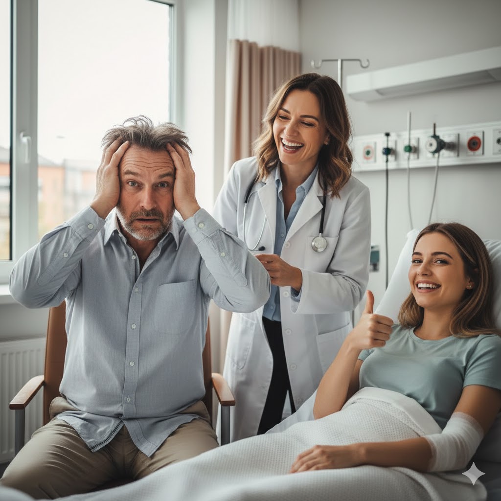 Bác sĩ khám xong, cười tươi chúc mừng: