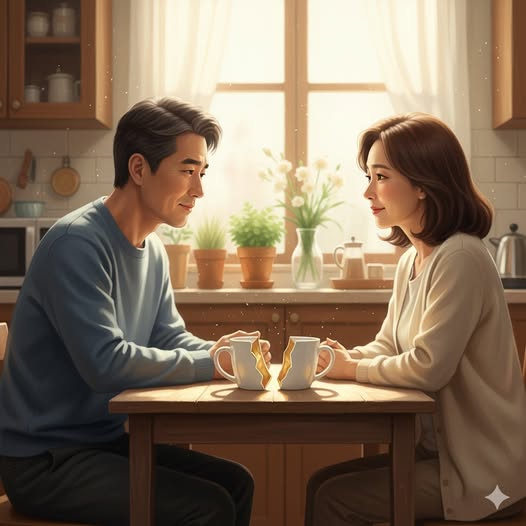 Họ cùng ngồi trong căn bếp cũ, nơi chiếc ly từng vỡ.