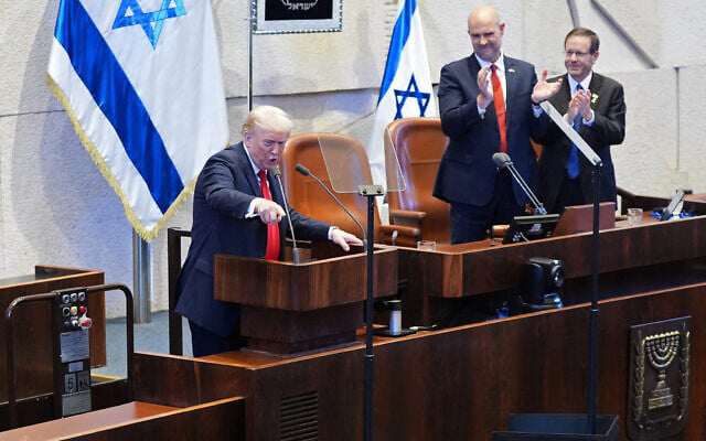 Bài phát biểu của ông Trump bị gián đoạn khi Ayman Udah và Ofir Kassif – 2 thành viên của đảng Hadash (Israel) – giơ các biểu ngữ phản đối xung đột và kêu gọi “công nhận nhà nước Palestine”. Hai người sau đó đã bị đưa ra khỏi nghị trường.