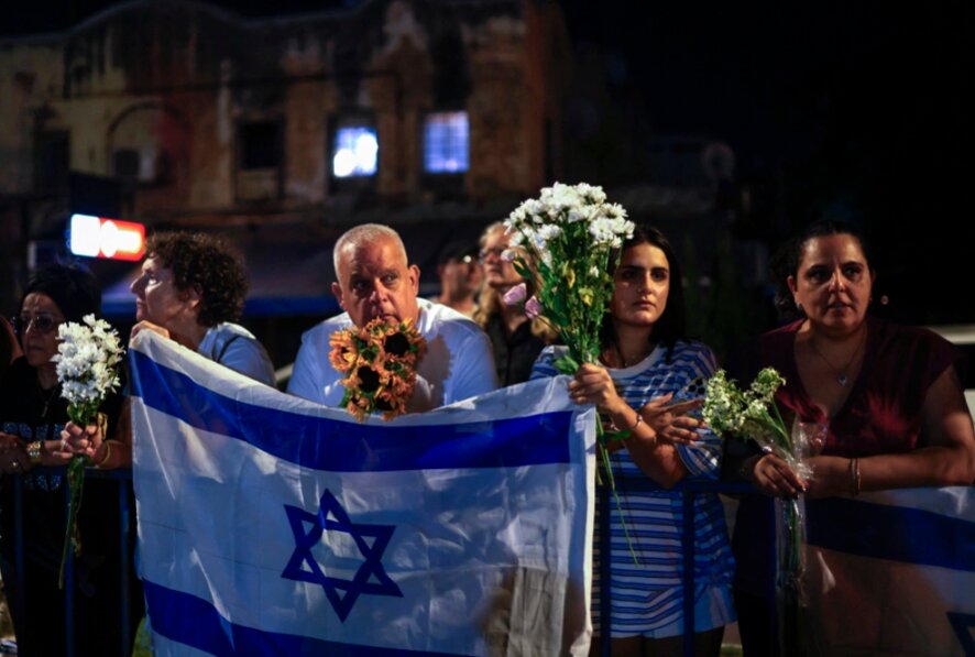 Người dân cầm hoa đón đoàn xe chở thi thể 4 con tin được Hamas bàn giao cho Israel hôm 13/10. Ảnh: AFP
