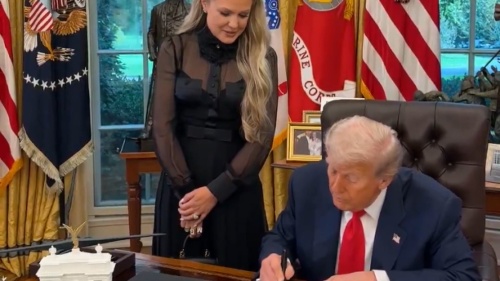 After the amazing Charlie Kirk Presidential Medal of Freedom ceremony in the Rose Garden today, President Trump invited Erika Kirk to the Oval Office.