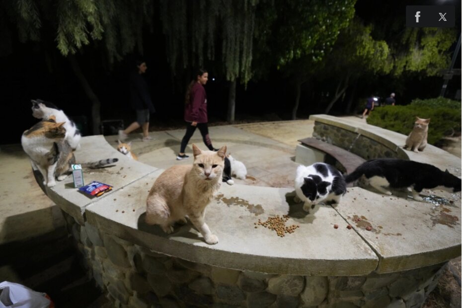 Mèo hoang trong công viên ở Strovolos, thủ đô Nicosia, Cyprus ngày 6/10. Ảnh: AP