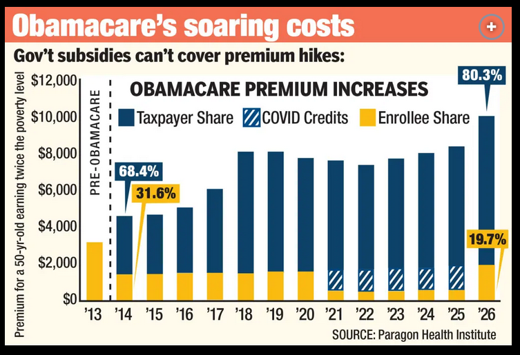 The truth? Premiums are expected to rise by $1,665, or 20%, on average, a Paragon Health Institute study found — yet the expiring subsidies account for only four of those percentage points, or just $333.