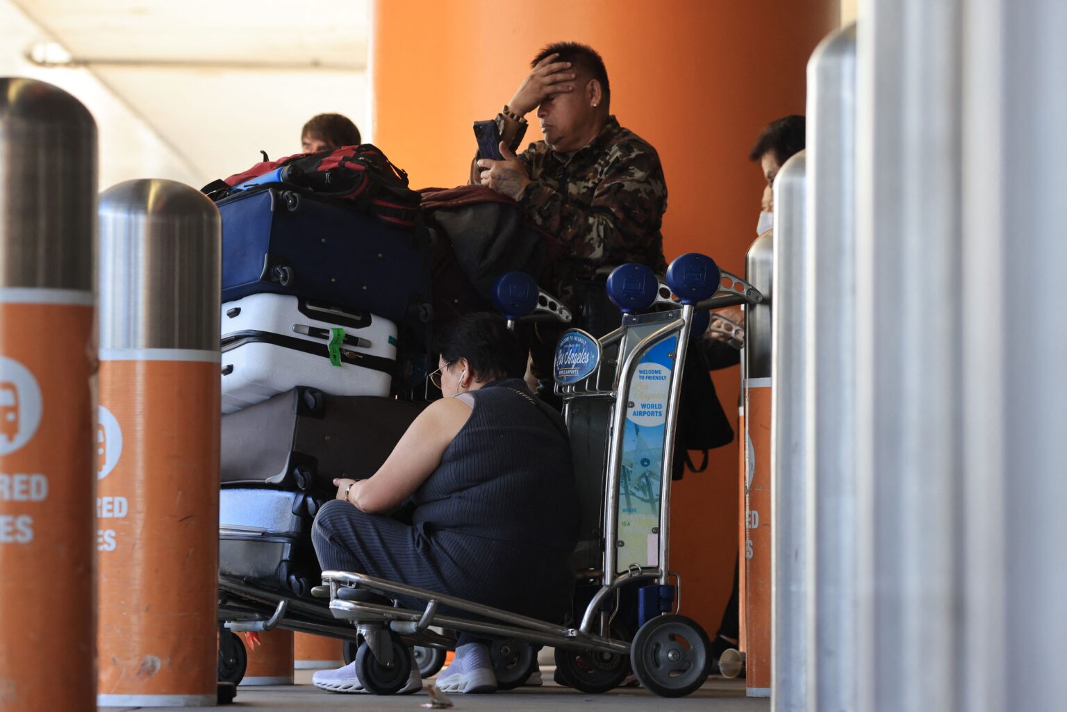 Hành khách đang mệt mỏi đợi chờ tại phi trường LAX. (Ảnh minh họa: David Swanson/AFP via Getty Images)