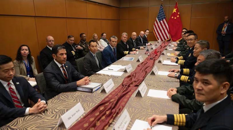 Trong cuộc họp với người đồng cấp Trung Quốc Đổng Quân ngày 31/10 tại Kuala Lumpur, Bộ trưởng Quốc phòng Mỹ Pete Hegseth cho biết Washington sẽ "kiên quyết bảo vệ lợi ích của mình", đồng thời nhấn mạnh tầm quan trọng của việc duy trì cân bằng quyền lực trong khu vực.