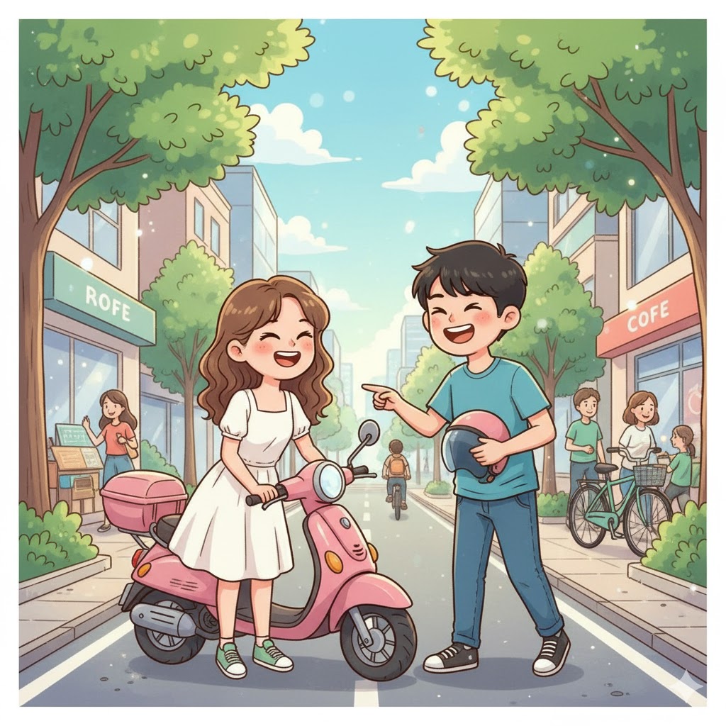 Cô gái: Hihi, đi đi, xe tôi… tôi tự sửa được.