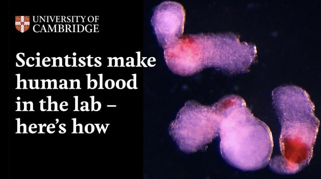 Một nhóm chuyên gia tại Đại học Cambridge (Anh quốc) vừa cho công bố thành tựu đột phá đó là tạo ra máu người từ tế bào gốc trong phòng thí nghiệm. Công trình này được thực hiện tại Viện Gurdon của trường, mô phỏng chính xác quá trình hình thành máu tự nhiên của phôi người, điều mà trước đây chỉ có xảy ra trong tử cung người mẹ.