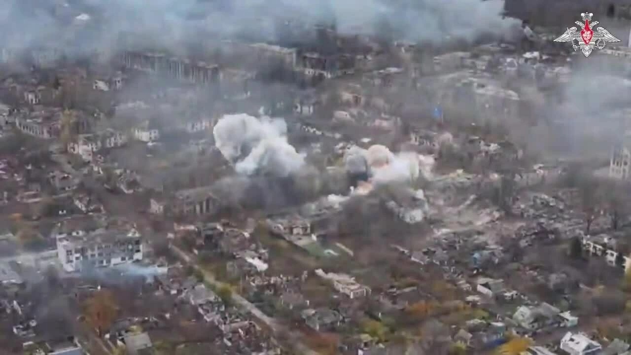 Nga liên tiếp thả bom lượn vào vị trí được cho là điểm tập kết của lực lượng Ukraine ở tỉnh Donetsk trong video đăng ngày 3/11.
