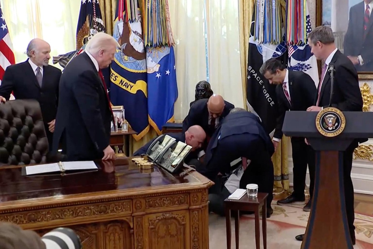 Tình huống này tạo ra sự hỗn loạn trong Phòng Bầu dục, khoảnh khắc bối rối này xuất hiện trong đoạn băng ghi hình của một số hãng thông tấn đang tham dự sự kiện. Sau đó, các giới chức ở đây đã nhanh chóng yêu cầu giới truyền thông tạm thời đi ra ngoài, không được ghi hình thêm để cho các giới chức giải quyết ổn thỏa.