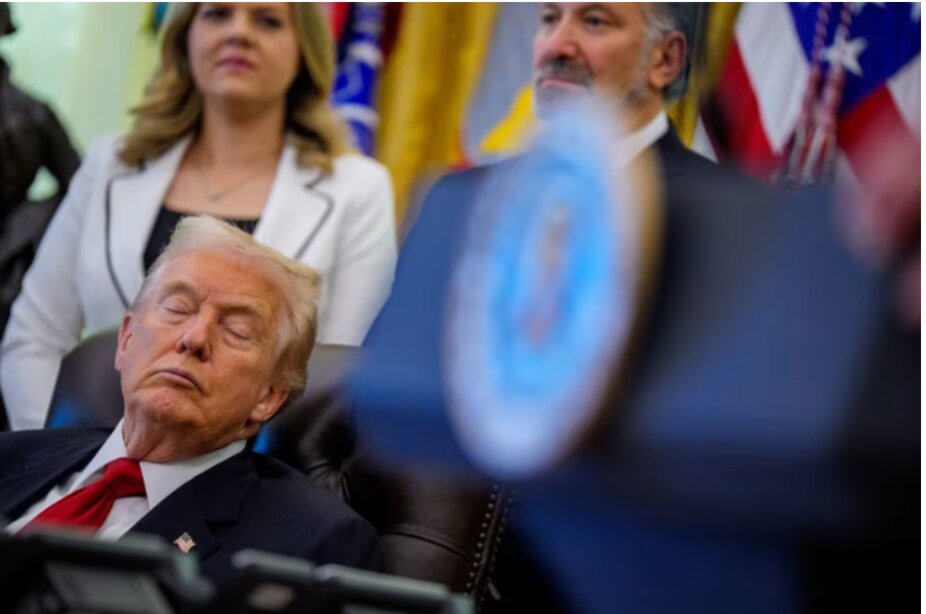 Hình ảnh ông Donald Trump dường như nhắm mắt trong lúc công bố chính sách tại Phòng Bầu dục lan truyền mạnh mẽ, khiến đối thủ chính trị đặt nghi vấn về sức khỏe.