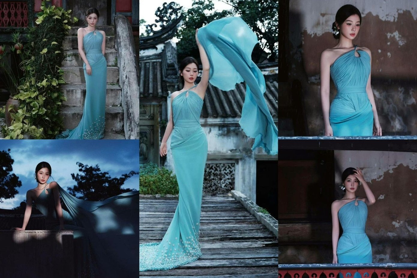 Váy xanh của Ngu Thư Hân bị chỉ trích. Sina.