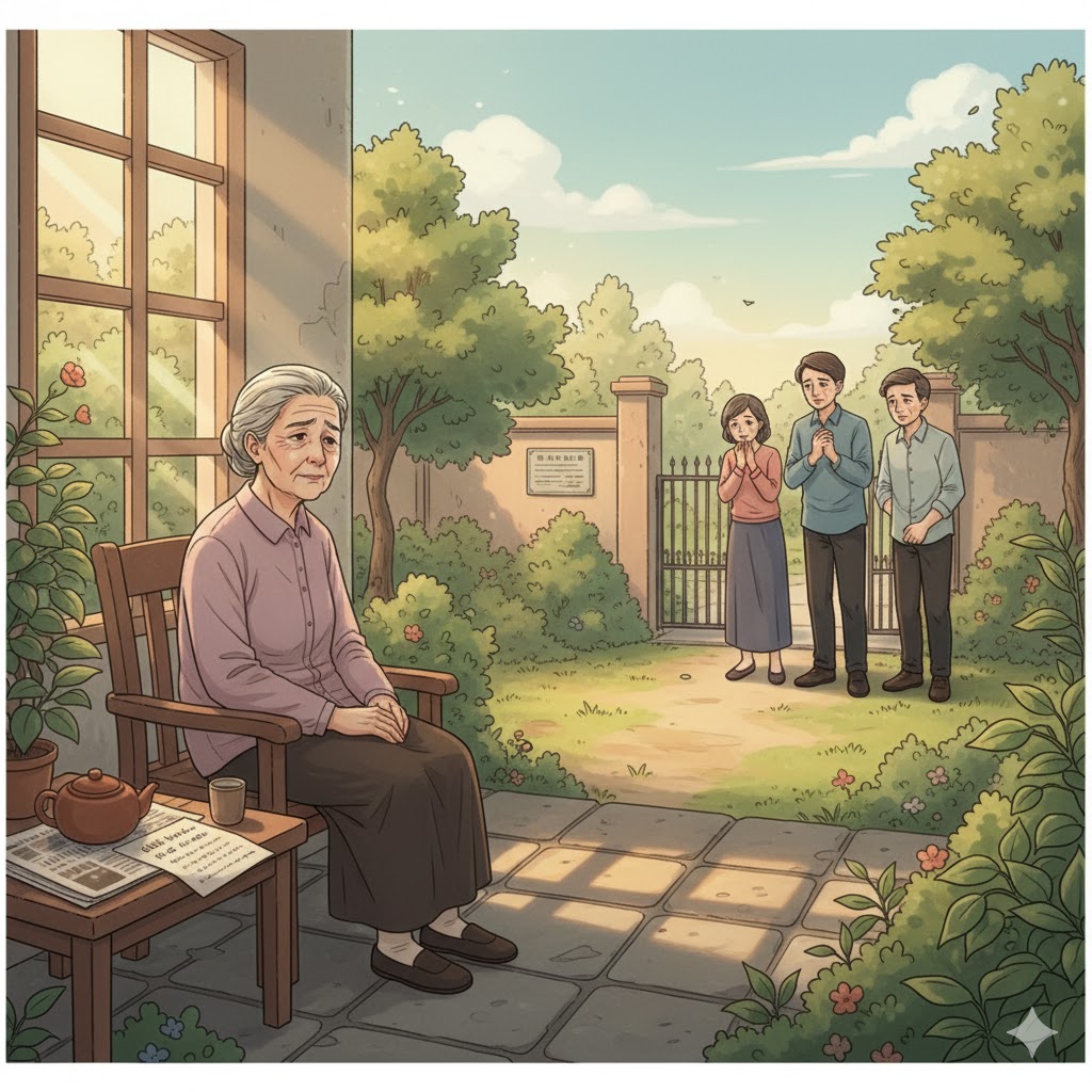 Sau vụ đó, cả ba anh em cùng đến viện dưỡng lão thăm tôi. Không ai nói nhiều, chỉ im lặng ngồi quanh chiếc bàn nhỏ. Đến khi tôi pha xong ấm trà, con gái cả mới nghẹn ngào: