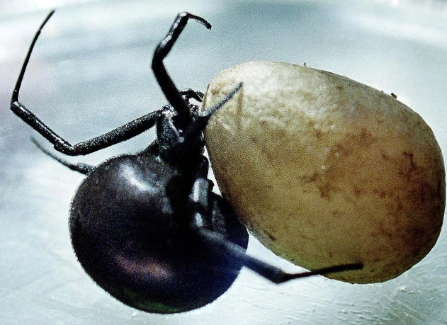 Một con nhện góa phụ đen cái mang túi trứng của mình