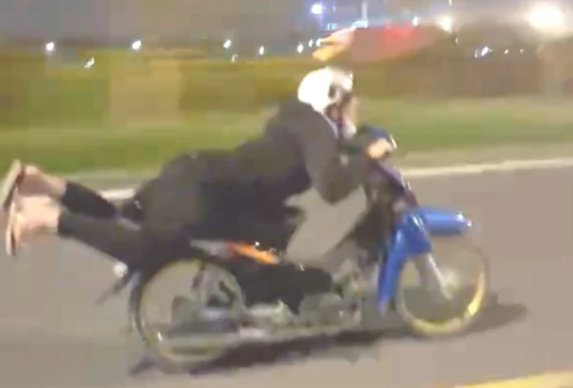 Ngày 13/11, Công an phường Bình Trưng, (TP.HCM) đang xác minh đoạn video lan truyền trên mạng xã hội ghi lại cảnh một người có hành vi lái xe máy bằng tư thế nguy hiểm khiến nhiều người xem thót tim.
