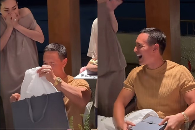 Kim Lý hạnh phúc khi nhận được quà đắt đỏ của vợ.