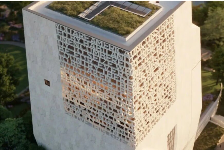 Phần đỉnh của Obamalisk với các từ xuất hiện trong một bài phát biểu của cựu tổng thống. Ảnh: Quỹ Obama.