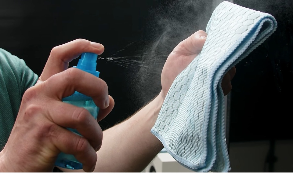 Các hãng TV đều khuyến cáo không xịt nước trực tiếp lên màn hình, nhưng có thể xịt lên khăn để lau kỹ hơn. Ảnh: Xiaomiui.
