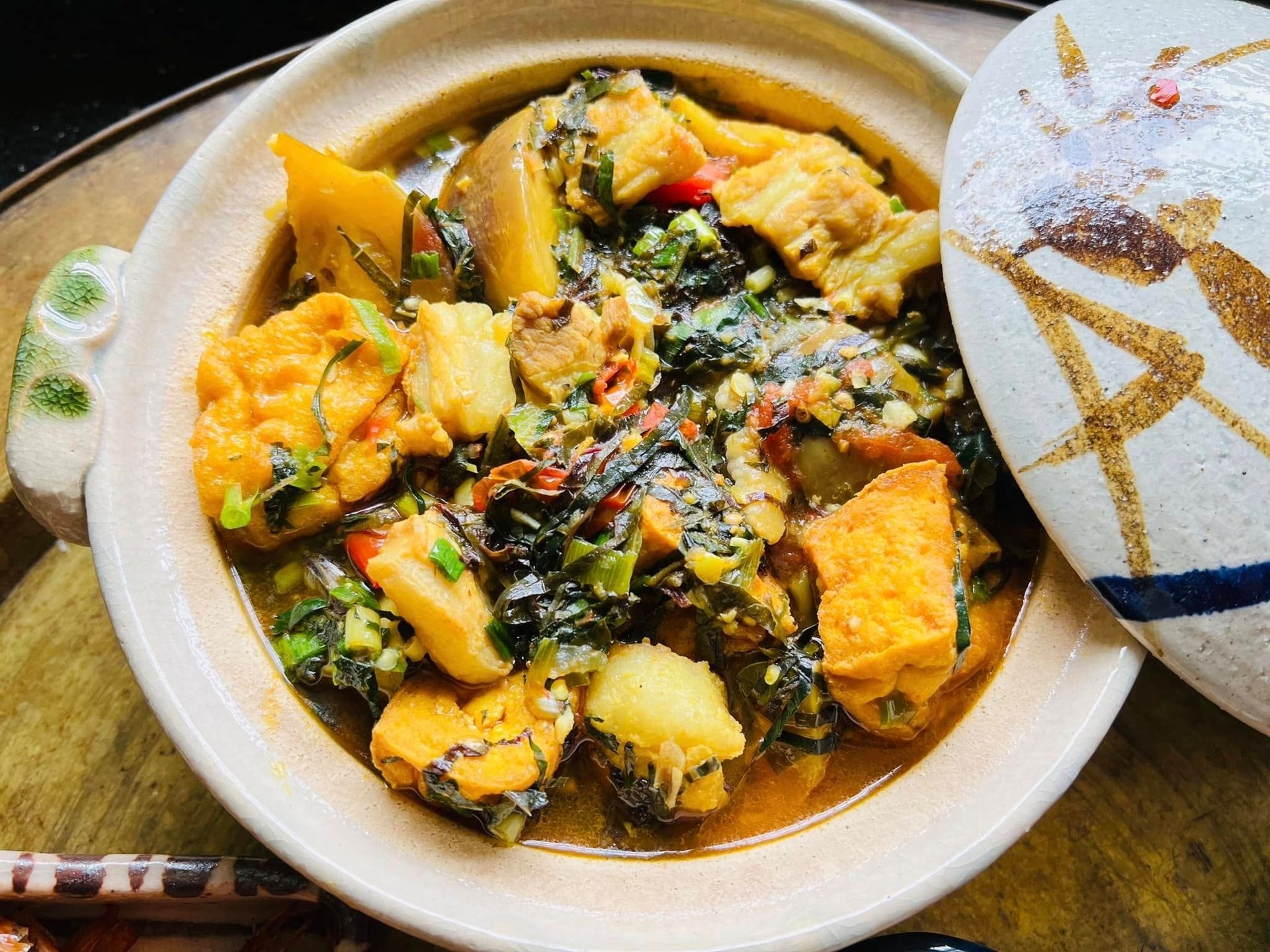- Một bát canh cà bung ngon và dậy mùi hay không là ở khâu này: cho tỏi tươi vào cuối cùng đảo lên và sau đó tắt bếp.