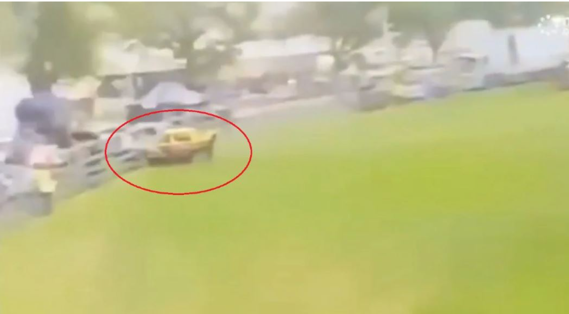 Ảnh chụp màn hình từ một video lan truyền cho thấy chiếc xe (màu đỏ) đâm vào khán giả. Ảnh: nst.com.my