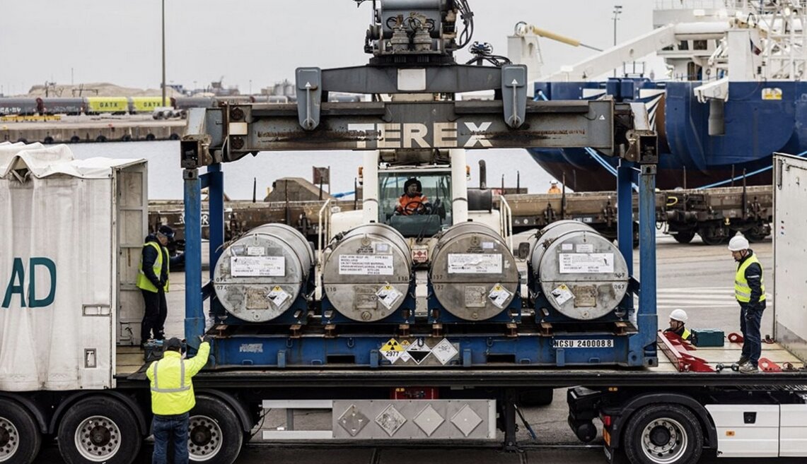 Greenpeace cho biết các thành viên của nhóm đã ghi lại cảnh khoảng 10 container dán nhãn phóng xạ được bốc lên một tàu chở hàng tại cảng Dunkirk ngày 15/11. Con tàu mang cờ Panama, có tên Mikhail Dudin, thường xuyên vận chuyển uranium tự nhiên hoặc uranium làm giàu từ Pháp sang Saint Petersburg.