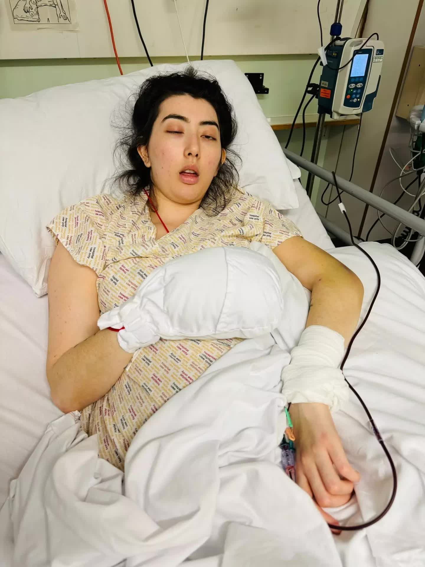 Lúc đầu, nhân viên khách sạn tưởng cô say rượu nên chỉ dẫn Cathy vào phòng. Tuy nhiên, khi cô phải “bò trên sàn nhà” để tới nhà vệ sinh, bác sĩ tại chỗ mới được gọi đến và cô được chuyển ngay sang bệnh viện.