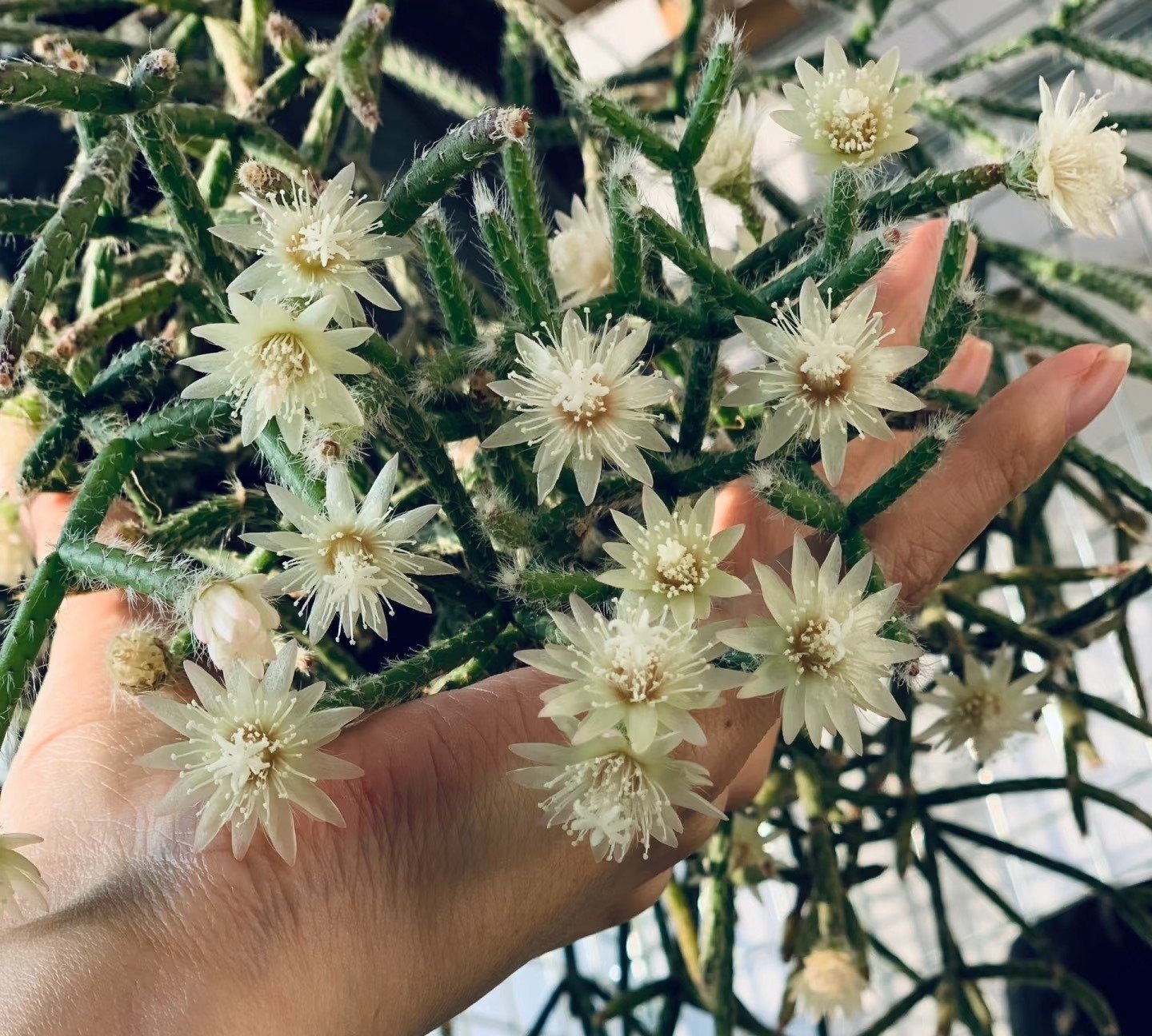 Trong đó, xương rồng quả lông (Rhipsalis pilocarpa) được nhiều người yêu thích, cùng với anh chị em khác của nó như xương rồng san hô (Rhipsalis cereuscula), xương rồng tầm gửi (Rhipsalis burchellii), xương rồng mì Spaghetti (Rhipsalis baccifera)...