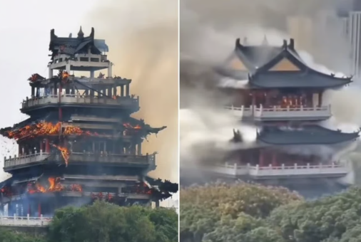 Vụ hỏa hoạn kinh hoàng thiêu rụi Văn Xương Các cao 3 tầng ở tỉnh Giang Tô, Trung Quốc, hôm 12/11 đã được xác định nguyên nhân. Đoạn clip lan truyền trên mạng xã hội ghi lại cảnh ngọn lửa bùng phát dữ dội tại tòa tháp, khiến một phần mái sụp xuống trong khi khói đen cuồn cuộn bốc lên trời.