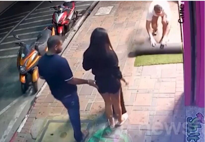 Sau khi sàm sỡ, người đàn ông thản nhiên bỏ đi, nhưng bạn trai của nạn nhân đã lập tức đuổi theo. Trong cơn tức giận, anh tung một cú tát mạnh khiến gã sàm sỡ ngã lăn ra vỉa hè và bất tỉnh tại bãi đỗ xe máy.