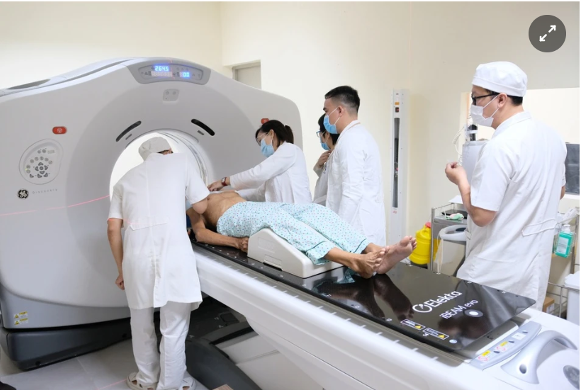 Ê-kíp thực hiện CT mô phỏng cho bệnh nhân ung thư phổi. Ảnh: BVCC.
