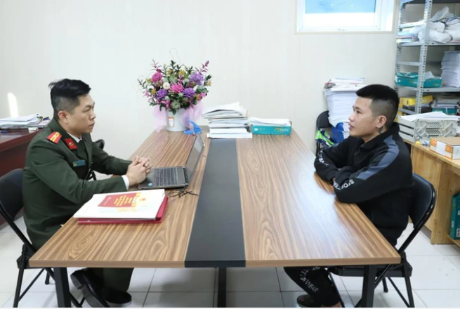 Cơ quan điều tra làm việc với đối tượng Nguyễn Văn Hai. Ảnh: CA Hà Tĩnh