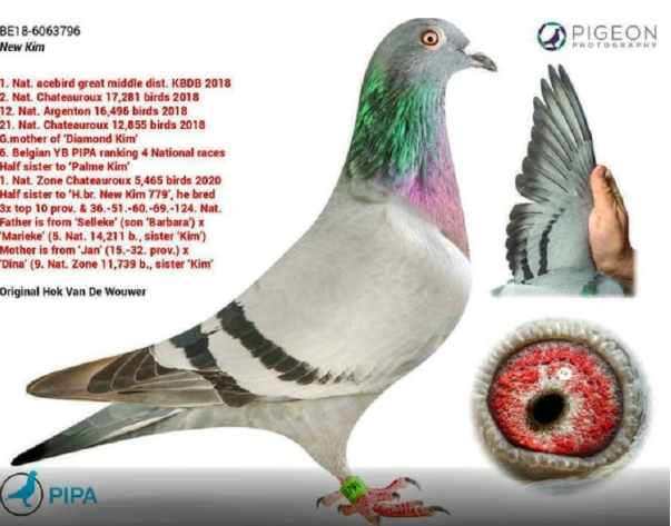 Ngôi sao mới của làng đua chim bồ câu là New Kim, một chú chim đến từ Bỉ, đã chính thức lập kỷ lục thế giới trong một phiên đấu giá trực tuyến vào năm 2020. Khi đó mới 2 tuổi, New Kim đã khiến giới sưu tầm toàn cầu phải sửng sốt khi được một nhà sưu tầm giàu có đến từ Nam Phi mua lại với mức giá 1,3 triệu euro, tương đương khoảng 35 tỷ đồng.