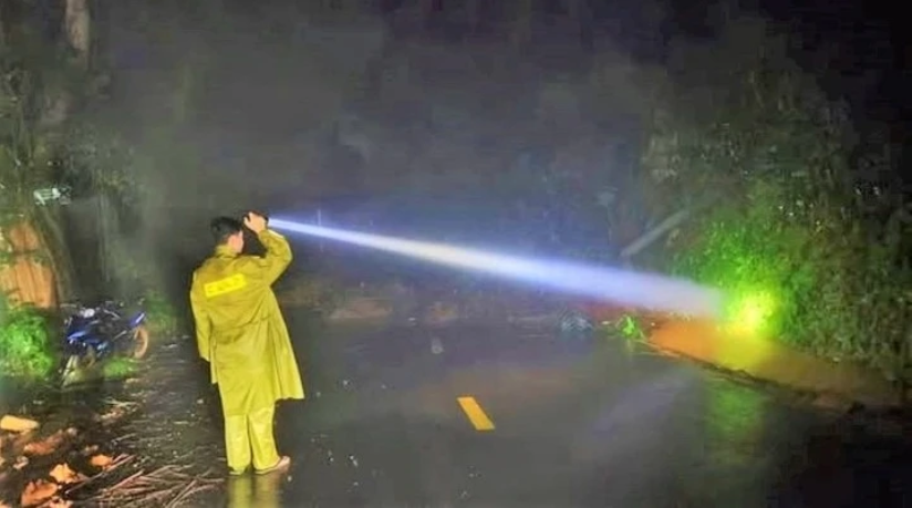 Mưa lớn kéo dài khiến đất đá và cây rừng trên đèo Gia Bắc, đoạn từ Km43 đến Km51 trên QL28, Lâm Đồng, đổ sập, vùi lấp mặt đường, giao thông chia cắt cục bộ.