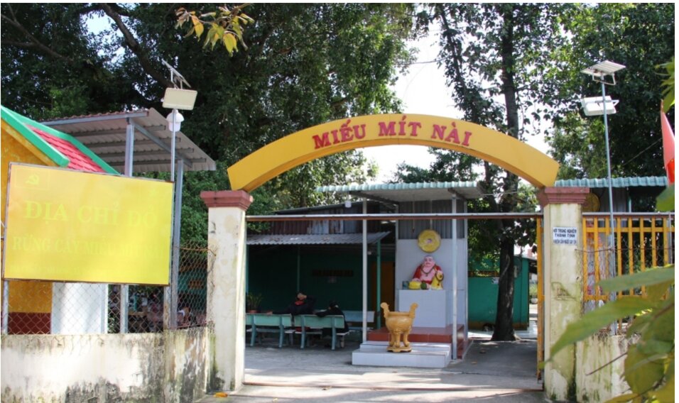 Trên tường chánh điện của miếu có bảng ghi thông tin: “Địa chỉ đỏ cây mít nài, ấp Tam Đông, xã Thới Tam Thôn, huyện Hóc Môn, TPHCM (nay là xã Đông Thạnh, TPHCM). Đây là nơi hội họp của cán bộ hoạt động cách mạng thời kỳ chống Mỹ như đồng chí Nguyễn Văn Hát (Ba Hát) - Trưởng công an quận, Đỗ Văn Mức (Tư Mức), Lê Văn Ba (Ba Móm), Út Bé, Năm Dương, Bảy Vệ”.