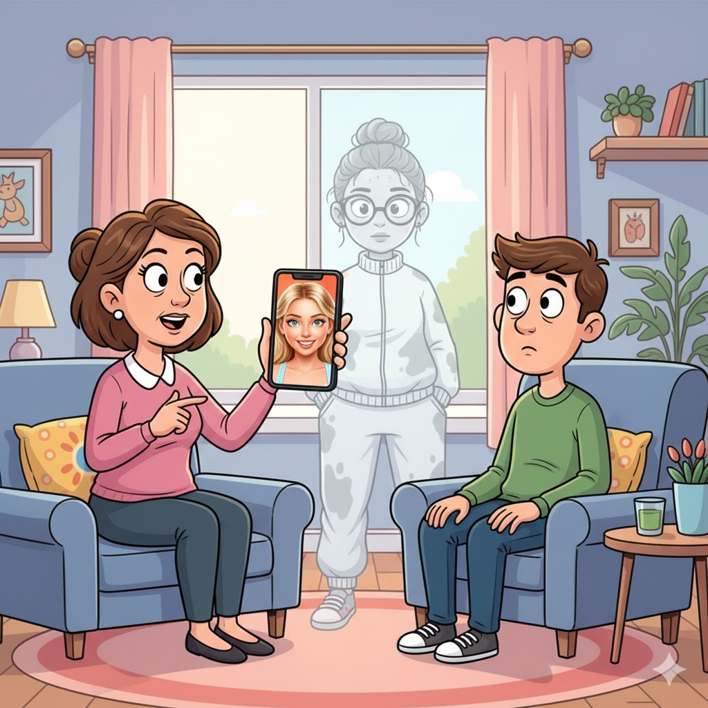 Mẹ bắt đầu liệt kê: – Có đứa mặt già như trái cà, sửa ảnh một phát thành ra trẻ như hotgirl. – Có đứa mặt xấu như điên, vào Photoshop thành tiên giáng trần. – Da sần như vỏ cây, chỉnh một phát trắng như bông. – Ngực lép như quả mơ, chỉnh xong… như trái dừa!