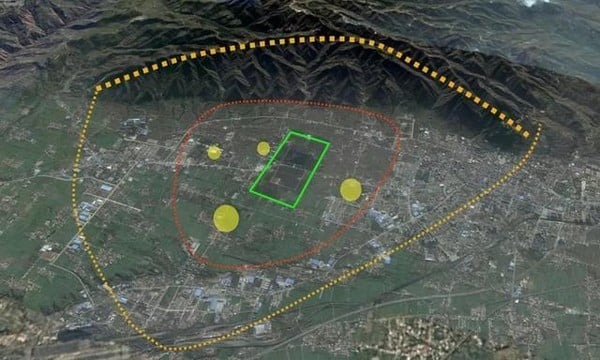 Hình ảnh vệ tinh về lăng mộ Tần Thủy Hoàng. Theo cuốn "Nghi lễ Cựu Hán", điểm tận cùng của lăng mộ khổng lồ này không thể đo đếm được. Ảnh: Internet