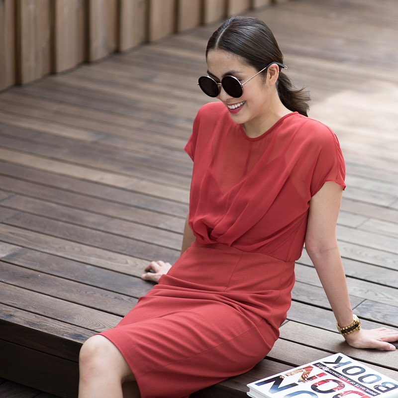 Sắc đỏ quả thực rất hợp với Hà Tăng. Chẳng hạn chiếc váy đỏ thiên hồng này đã giúp cô khoe trọn vẻ thanh lịch, nền nã đúng chất quý cô hiện đại. Với phom váy gọn gàng, tinh giản nhưng tôn dáng, đây là kiểu trang phục mà chị em công sở hoàn toàn có thể tham khảo cho những dịp cần chỉn chu mà vẫn thật nổi bật.